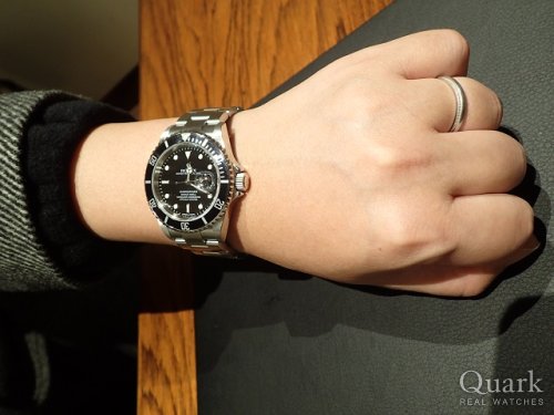M様、この度はクォーク仙台店をご利用いただきまして誠にありがとうございます。M様がお選びになられた『14060M』は、2001年~2012年まで生産されていたアルミ製ベゼルディスクが特徴的な5桁リファレンスモデルでございます。生産が終了してから10年以上経過した現在もファンが多く、現行モデルには無い様々なディティールも人気を後押ししている印象です。サブマリーナーはロレックス全体で見ても、カジュアルからフォーマルまで幅広くご使用いただける汎用性が高いモデルですので、これから末永くご愛用いただけましたら幸いでございます。また、ご使用に際して気になる点がございましたら、しっかりサポートさせていただきますので、お気軽にお申し付けくださいませ。尚、私どもではブレス洗浄サービスを行っておりますので、仙台駅方面へお越しの際は、是非お立寄りくださいませ。どうぞ、今後とも変わらぬご愛顧を賜ります様、宜しくお願い申し上げます。 クォーク仙台店 沼澤