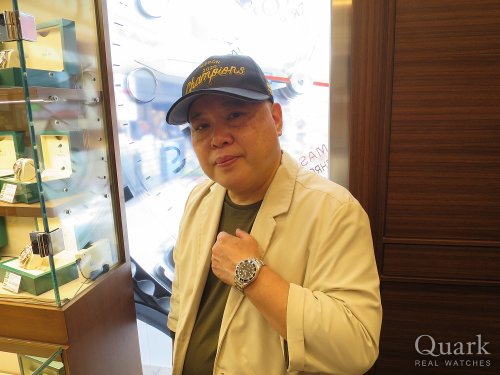 この度は当店にてサブマリーナーを購入頂きありがとうございました。GMTもサブマリーナーもどちらも素晴らしい時計なので、末永く楽しくお使い頂けることと存じます。今後のアフターサービスに関しては私(高須)にお任せ下さい。時計を通じた末永いお使いの程、宜しくお願い申し上げます。