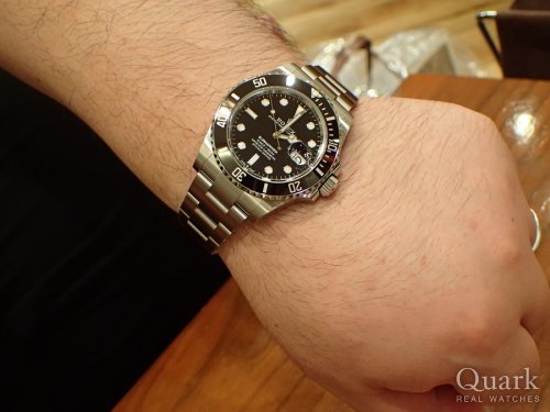 今年の2月からロレックスマラソンをしたけれで、購入することは出来ないと悟り、クォークさんで購入する事を決めました。4行表記であることと、現行とは違うアルミのプレートに魅力を感じました。