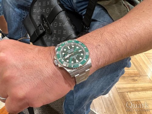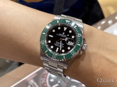 M様 この度は数ある時計店からクォーク名古屋店をご利用いただき誠にありがとうございます。ご購入いただきました『Ref.116610LV』は2018年式の個体で、現在ディスコン(廃盤)となったモデルでございます。こちらのモデルは2003年にSUBMARINER誕生50周年を記念し発表された16610LVの次期モデルとして、現在人気急上昇中のSUBMARINERで御座います。2010年にリニューアルしたベゼル・ダイヤル両方ともがグリーンの通称『ハルク』で、現行の緑サブよりも希少性・資産性が高いお時計でございます。SUBMARINERは人気のモデルとなりますので、M様の自慢の一本になると思います! またブレス洗浄、タイムチェックも無料で行っておりますので、お近くにお越しの際は遊びにいらしてくださいませ。お使いいただく上で何かご不明な点等ございましたら、また久保までご相談ください。