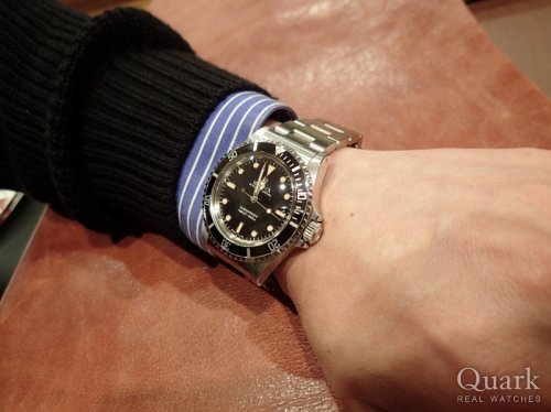 M様 日頃より私共クォークをご利用頂き、誠に有難う御座います。とても雰囲気の良いサブマリーナーでしたね。Ref.5513は以前から気になっていたとの事でしたが、これまでご検討頂きました期間のM様の様々な想いのこめられた1本になりますね。ヴィンテージモデルは気に入ったモノに出逢う事が難しいモデルになりますが、M様に喜んで頂けました事、とても嬉しく思っております。その想いのこもった1本、是非普段からご使用頂き、新たな魅力を感じて頂けましたら幸いです。また今回のヴィンテージ・サブマリーナーは、現在ご愛用頂いておりますコレクションとはガラッと雰囲気の違う1本となりましたね。ヤケの入ったインデックスが味わい深く、現行品よりだいぶ軽くなりますので、使い易さも感じて頂けるのではないでしょうか。M様の腕元で大活躍させてください。これからも、気になるモデルやご質問等が御座いましたら、是非お気軽にご連絡ください。M様のお役に立つことができますよう努めて参ります。この度も、誠に有難う御座いました。今後とも、末長いお付き合いの程、どうぞ、宜しくお願い致します。 クォーク仙台店 麻生