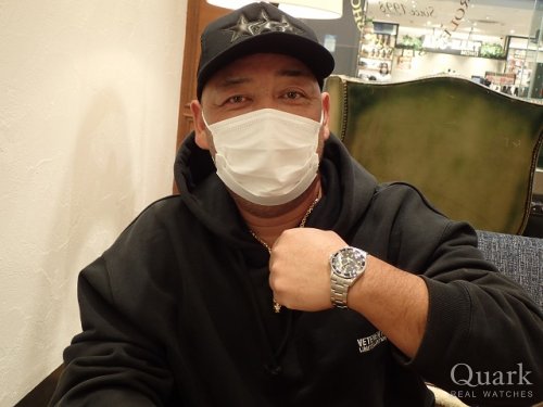 H様、この度はクォーク神戸店をご利用頂きまして誠に有難うございました。今回ご購入頂きました Ref.14060Mは、現行モデルと異なるシャープなケースとアルミ製のベゼルが最大の魅力です。製造年数は2010年と新しくコンディションも良かったです。H様に大変良くお似合いでしたので、末永くご愛用頂ければ幸いでございます。アフターサービスとして、ブレスレットの洗浄及び調整も無料で行っておりますので、お近くに来られた際には是非共遊びにいらして下さい。心よりお待ち致しております。クォーク神戸店 増田