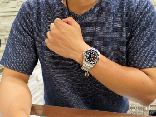 20歳の頃からサブマリーナーの購入を考えていましたが、なかなか出会えませんでした。偶然にも通りかかったクォークなんば店においてあった為、このタイミングで購入を決めました。