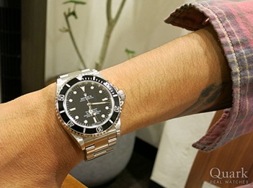サブマリーナーノンデイトは日付表示のないシンプルなデザインと操作性が気にっており、Ref.5513も愛用していますが、ヴィンテージモデルとは違った楽しみ方をする為、Ref.14060の購入を決めました!特にルミノバ夜光への移行期にみられる「SWISS」表記のシンプルなダイヤルも気に入っています!