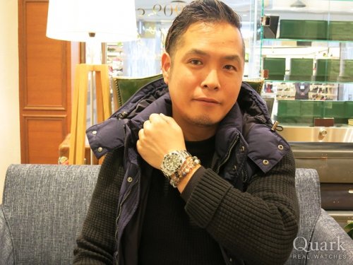 T様 この度は、クォーク神戸店をご利用頂き誠に有難う御座います。お選び頂いた、現行型の青サブマリーナーは色鮮やかで本当に綺麗なお色です。18金イエローゴールドとの相性も抜群で、ダイバーズロレックスの中でもダントツの人気を誇ります。一生モノとして相応しい1本ですので、末永くご愛用頂ければ幸いです。アフターサービスとして、ブレスレットの無料洗浄も行っていますので三宮に来られた際は是非お立ち寄り下さいませ。また何かご不明な点などありましたら、お気軽にお問合せ下さいませ。今後ともクォーク神戸店を何卒宜しくお願い申し上げます。クォーク神戸店 増田