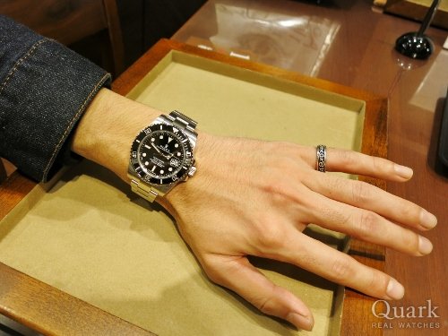 S様 この度はクォーク神戸店をご利用頂き誠に有難う御座います。ご購入頂いた現行モデル サブマリーナーノンデイト Ref.114060ですが、S様のコメント通り日付のないシンプルなデザインで人気を集めており、高級感のあるセラミックベゼルを搭載した事により、デイト付きに負けずとも劣らない人気モデルになっております。オンオフ問わずご使用頂けますので、今後も末永くご愛用頂ければ幸いです。また何かご不明な点などありましたら、お気軽にお問合せ下さいませ。今後とも宜しくお願い致します。 クォーク神戸店 柳原