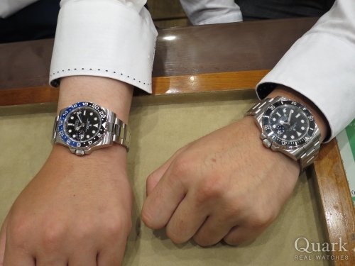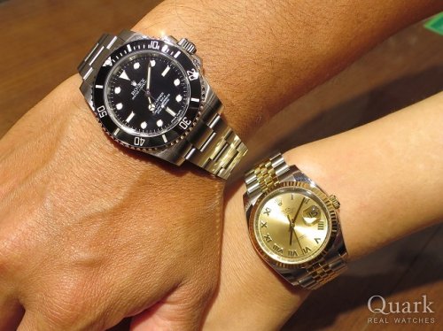 いつもクォークをご愛顧賜り誠にありがとうございます。これまでいくつかのロレックスをご愛用いただいたH様。エアキング、エクスプローラーII、デイトナ、そしてこのグリーンサブと、これまでお持ちのロレックスは全て雰囲気やスペックの異なるものをお選びいただいてきたH様の感想を聞くのが楽しみです。SSデイトナの下取りはとても悩まれたとは思いますが、購入時よりも高値がついた絶妙なタイミングで買い替えいただけましたので、時期的にも良かったと思います。デイトナも似合っておられましたが、グリーンサブの少しゴツっとしたデザインも、H様の腕元にピッタリでした。鮮やかなグリーンサブを着ける休日が充実したものになりますよう、しっかりサポートさせていただきますので、今後ともお付き合いのほど、よろしくお願いいたします。 クォーク横浜店 長本
