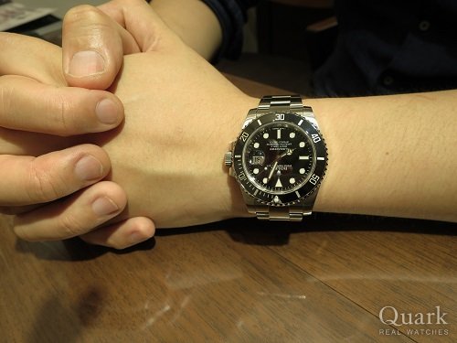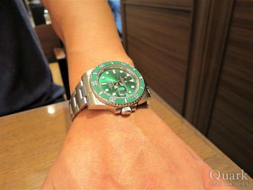 手放したサブマリーナーノンデイトがまた欲しくなり、同じものを買いに来たが、どうせなら違うものにしようと思い、今回はデイト付きにしました。 これまでサイクロップレンズがどうも苦手でしたが、こうして腕に着けてみると、悪くないなと感じました。