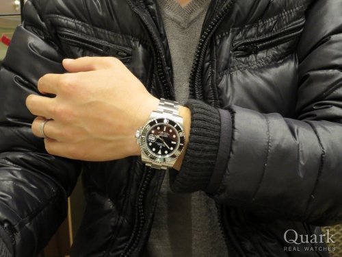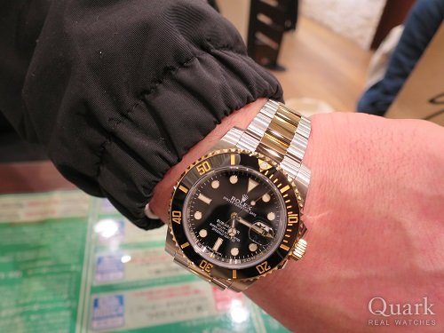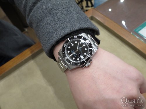 K様 この度はクォーク名古屋店をご利用頂き、誠にありがとう御座います。お選び頂いたサブマリーナー コンビモデルは、ステンレスと違った華やかなさのあるゴージャスさが魅力的です。ブラックとイエローゴールドとの組み合わせが、一層高級感を醸し出しますね。個人的にもK様の雰囲気に抜群に似合っておりましたので、このモデルしかないと感じました!また嬉しそうな表情が印象的で、私自身もご担当に携われ、嬉しく感じました。素敵なお写真まで頂き、ありがとう御座います!今後のサポートに関しても、私が精一杯努めさせて頂きますので、ご遠慮無くご相談下さい。また栄にお立ち寄りの際は、ブレス洗浄を兼ねて遊びにいらして下さい。またK様にお会い出来る日を楽しみにしております。
