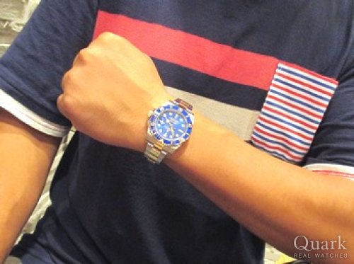 以前よりグリーンベゼルのサブマリーナーが欲しかった。現行モデルのグリーンサブマリーナーだと強調し過ぎるので、前タイプのRef.16610LVが良かった。クォークさんに伺う前までは「ファット4」や「BIG SWISS」への拘りは無かったのですが、たまたま展示していたのと、店員さんと話をするうちに「ファット4」「BIG SWISS」のグリーンサブマリーナーに惹かれて購入を決意。