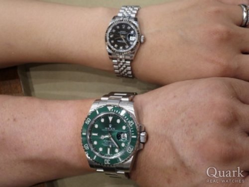 20歳の記念でデイトジャストを購入してから10年。10年毎にロレックスを買おうと自分の中で決めていました。これから10年また頑張るために選んだのはグリーンサブです!現行とも悩みましたが旧型の方がカッコイイし着け心地も良かった。たまたま立ち寄ったクォークさんで良い出会いがあって本当に嬉しいです!