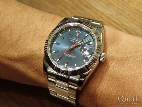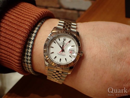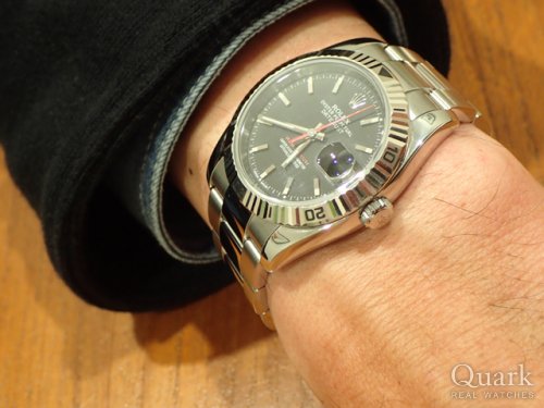 S様 この度は数ある時計店からクォーク上野本店をご利用いただき誠にありがとうございます。ご購入いただきましたTURN-O-GRAPH Ref.116264は2004年から2013年まで製造されていた人気のモデルで御座います。エンボス加工が施されたサンダーバード固有の形状から、フルーテッドベゼルのように美しいカッティングが施された魅力的なお時計となります。中古市場でも数が少なくなってきているモデルですので、是非、大切にご使用いただければと思います。また、ブレスレットの洗浄及び調整も無料で行っておりますので、お近くにお越しの際は遊びにいらしてくださいませ。お使いいただく上で何かご不明な点等ございましたら、また林までご相談ください。今後とも末永いお付き合いの程よろしくお願いいたします。