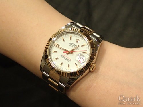 T様 いつもクォーク神戸店をご利用くださいまして、誠にありがとうございます。今回お選びいただきましたターノグラフのコンビモデル Ref.116261は、回転ベゼルを搭載し、スポーティーな印象もありながら、ジュビリーブレスレットと、ピンクゴールドの組み合わせで上品な雰囲気が漂う1本ですね。ホワイトダイヤルは、爽やかでビジネスシーンでも使いやすいかと思いますので、是非ご愛用くださいませ。今後ともクォーク神戸店をよろしくお願い申し上げます。