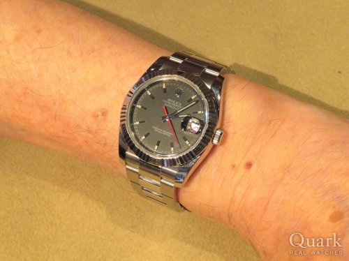 H様 この度はクォーク名古屋店をご利用頂き、誠に有難う御座います。H様の憧れ御時計のご購入に携わらせて頂く事が出来、大変光栄に思います。生産終了してから徐々に入荷も減り、特にジュビリーブレス仕様はあまり入荷しませんので、本当にタイミング良くご案内出来て、良かったと感じております。赤色で統一したデザインは、ドレスウォッチながらスポーティーさが感じられますね。幅広いシーンで末永くご愛用頂けると存じます。ご使用される中で、ご不明な点など御座いましたら、お気軽にご相談下さいませ。今後とも末長いお付き合いの程、宜しくお願い致します。
