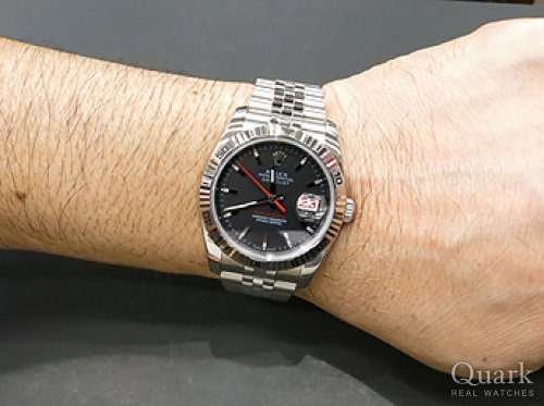 定番のデイトジャストと迷いましたが、ターノグラフの回転ベゼルとブラックダイヤルに映える赤い秒針に惹かれました。高級感とスポーティさを見事に併せ持ったモデルであり、一生物の時計として年代を問わず使えると思いました。
