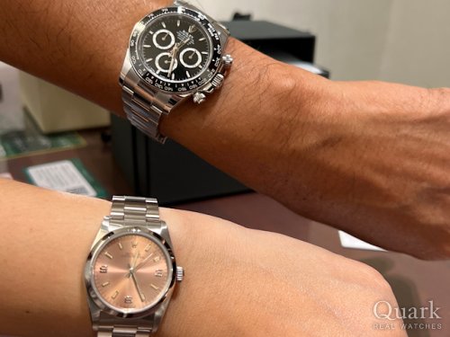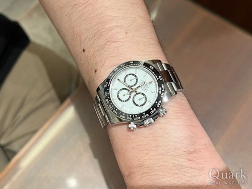 H様 いつもクォーク上野本店をご利用いただき誠に有難うございます。念願のデイトナ白文字盤のご購入、おめでとうございます!!タイミングよく良個体をご紹介できたこと私(中島)も嬉しい限りです。すでにお持ちのRef.126610LNと状況に応じて使い分けも、お楽しみいただけますと幸いです。今後とも何卒よろしくお願いいたします。