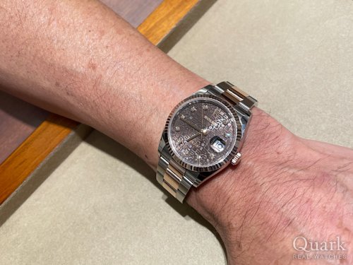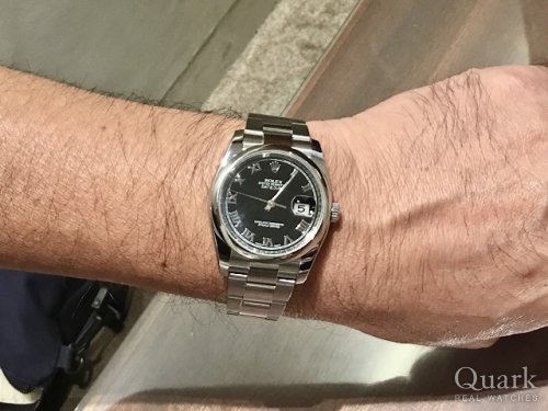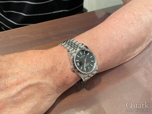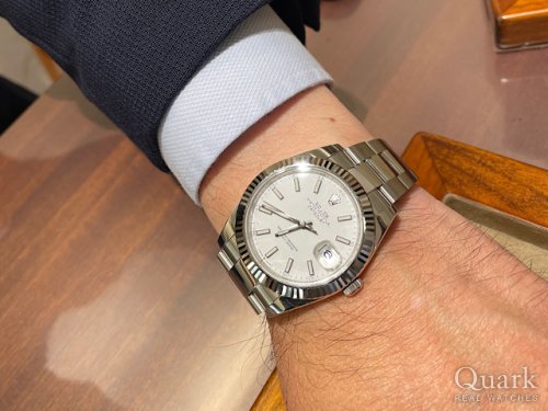 M様 この度は数ある時計店の中からクォーク上野本店をご利用いただき誠にありがとうございます。ずっと探していたお時計の一つとの事で、この度ご案内が出来た事、私(林)も嬉しく思います。高級感のあるフルーテッドベゼルに加え、コンパクトな見た目がカッコいいですね!最近になりDATEJUST人気も高まってきておりますので、タイミングも良かったのではないでしょうか。ブレスレットの洗浄及び調整も無料で行っておりますので、お近くにお越しの際は遊びにいらしてくださいませ。お使いいただく上で何かご不明な点等ございましたら、また林までご相談ください。今後とも末永いお付き合いの程よろしくお願いいたします。