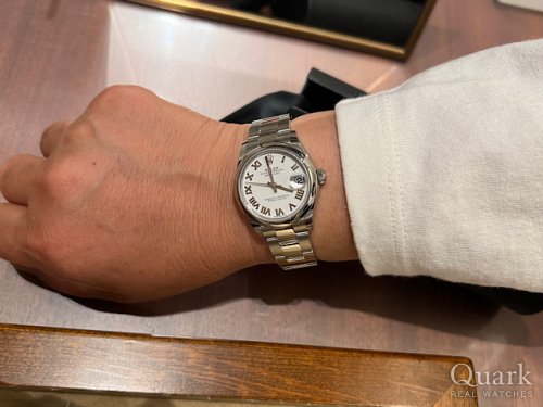 N様 この度は数ある時計店の中からクォーク上野本店をお選びいただき誠にありがとうございました。今回タイミング良くN様にお時計をご紹介出来た事、私(中島)も嬉しく思います。ご購入頂きましたDATEJUST31 ホワイトローマは美しい白文字盤にローマ数字の相性が抜群の一本でございます。とてもシンプルなデザインなのでどんな服装にも合わせやすく普段のコーディネートをワンランクアップさせること間違いないと存じます。お近くにいらした際は店頭にてお時計のご使用感などお伝えいただければ幸いでございます。また気になる点等ございましたらお気軽にお申し付けくださいませ。今後とも何卒よろしくお願いいたします。