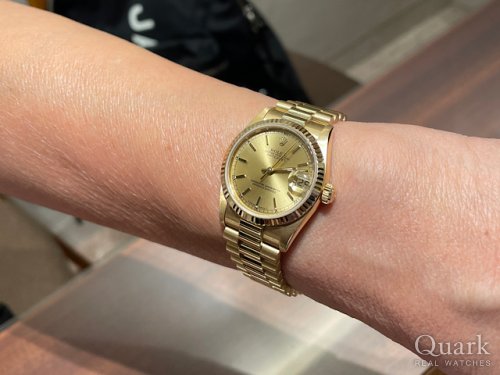 T様 いつもクォーク上野本店をご利用いただき誠にありがとうございます。この度ご購入いただきましたRef.68278は定番であるコンビモデルだからこそゴージャス感が味わえ、着用した腕を華やかに装飾してくれる素敵なお時計でございます。こちらはボーイズサイズですが、少し大きめのサイズを着けたい女性の方にも人気がある一本の為、T様も満足いただけたのではないでしょうか。ブレスレットの洗浄及び調整も無料で行っておりますので、お近くにお越しの際は遊びにいらしてくださいませ。お使いいただく上で何かご不明な点等ございましたら、また林までご相談ください。今後とも末永いお付き合いの程よろしくお願いいたします。