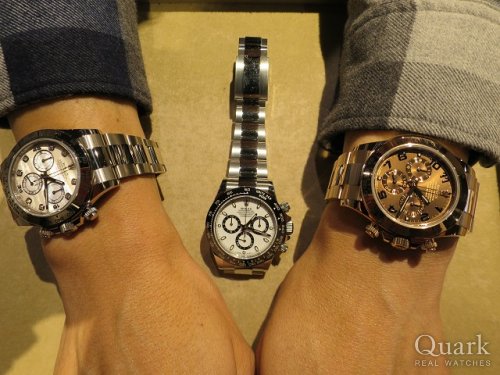 O様 この度は数ある時計店からクォーク上野本店をご利用いただき誠にありがとうございます。以前から金無垢のお時計がもう1本欲しいとお伺いしておりましたので、O様のお手元に最高にコンディションの良いお時計をご紹介する事が出来た事、大変嬉しく思います。O様のROLEXに対する知識量の多さには私も驚く事が多く、お会いする度に勉強させて頂いております。今回、ご購入頂きましたDAYTONA Ref.116505 チョコレートアラビアは金無垢ならではの高級感と独特な魅力が詰まっており、O様の雰囲気にとても似合っておりました。またブレスレットの洗浄及び調整も無料で行っておりますので、お近くにお越しの際は遊びにいらしてください。是非永くご愛用いただければ幸いです。お使いいただく上で何かご不明な点等ございましたら、また林までご相談ください。今後とも末永いお付き合いの程よろしくお願いいたします。