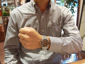 ファーストロレックスということで、雑誌やインターネットで情報を集めておりましたが、サブマリーナーが一番気になっていました。そこで、お店で実際に試着してみて、「これが良い」という確信へと変わったために購入に至りました。デザインの格好良さはもちろん、未だ身近な人で着けている人がいなかったということが購入の大きなポイントです。