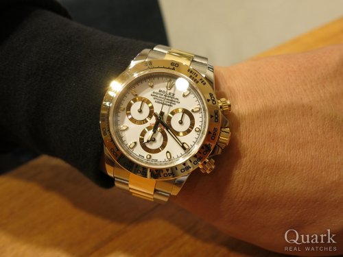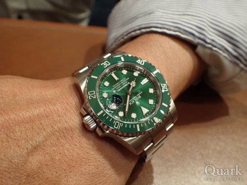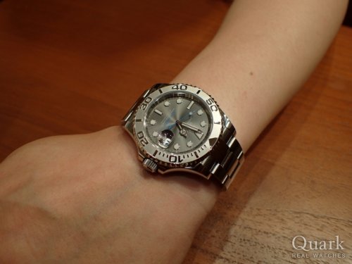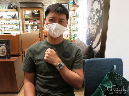 H様、この度はクォーク梅田店をご利用頂きまして誠に有難うございました。日頃よりご贔屓下さり、心より感謝を申し上げます。今回ご購入頂きましたモデル Ref.118346A(シルバー)は、現在は生産終了で作られていない36ミリサイズのオールプラチナ仕様デイデイトです。言うまでもなく最高峰であり、H様に相応しい素晴らしいモデルです。本当に絶妙なタイミングでH様の目に留まり、このような形でお喜び頂けて心より嬉しく思います。本当にお似合いで素敵でございました。末永くご愛用頂けましたら幸いです。今後もご指名頂けますようしっかりとサポートををさせて頂きますので、何かご要望などございましたら私井内までお気軽にお申し付け下さいませ。また、ブレスレットの洗浄及び調整も無料で行っておりますので、お近くに来られた際には是非共お立ち寄り下さいませ。心よりお待ちしております。 クォーク梅田店 井内