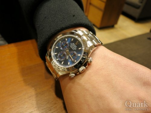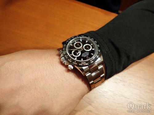 K様、この度はクォーク梅田店をご利用頂きまして誠に有難うございました。ご遠方よりわざわざお越し下さり心より感謝を申し上げます。ご購入頂きました Ref.116500LN(黒)は、2016年から生産されるオールSS仕様のデイトナです。ブラックで統一されたデザインは、シーンを選ばず幅広くご使用頂けます。ホワイトダイヤルも素敵でしたが、お選び頂いたブラックはK様のたくましいお腕元にピッタリでさらにお似合いでございました。末永くご愛用頂けましたら幸いでございます。今後もご指名頂けますようしっかりとサポートをさせて頂きます。何かご要望などございましたら、私井内までお気軽にお申し付けくださいませ。また、ブレスレットの洗浄及び調整も無料で行っておりますので、お近くに来られた際には是非共遊びにいらして下さい。心よりお待ち致しております。 クォーク梅田店 井内