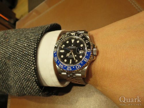 F様、この度は当店にてGMTマスターII Ref.126710BLNRをご購入頂きまして誠に有難うございます。こちらのモデルは昨年新作として発表されたばかりで流通量が少ない状況です。一般的にスタンダードモデルのイメージが強いジュビリーブレスですが、GMTマスターのデザインとの組み合わせはまた一味違った魅力がありとても素敵ですね。約70時間のパワーリザーブを実現した新型ムーブメントを搭載しており、実用面でもご満足頂けるかと思います。F様に安心してご使用頂けるようにしっかりとサポートさせて頂きますので、何かお困りなどございましたら是非お声掛けくださいませ。またのご来店を心よりお待ちしております。