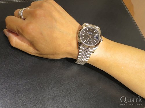 ロレックスらしいデザインと高級感があるジュビリーブレスが好きで購入しました。光沢感のあるサンレイダイヤルがとても綺麗なブラックダイヤルでした。