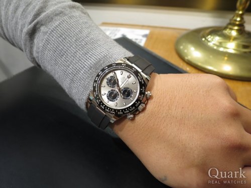 M様 日頃よりご愛顧を賜わり、お礼申し上げます。SSモデルのデイトナもご覧頂きましたが、やはり当初よりお考えになっていたホワイトゴールドモデルでしたね!今回お選び頂きましたRef.116519LNは、スポーツらしいデザインでありながら、高級感もしっかり持ち合わせた1本になります。市場での流通も少なく、弊社でもなかなかご用意が難しいモデルではございますが、タイミングよくM様にご案内が出来、嬉しく思っております。これだけのレアモデルであれば、周囲の方と被ることなくお使い頂けると思いますので、優越感にも浸れますね。M様のしっかりした腕によくお似合いでございました!M様のロレックスライフがよりよいものとなりますようしっかりとサポート致しますので、ご愛用させていく中でご不明な点があれば何なりお申し付け下さいませ。今後共クォーク梅田店を宜しくお願い致します。