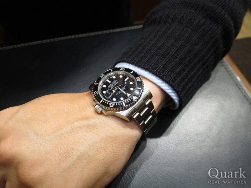 Y様 この度は、クォーク梅田店をご利用頂きまして誠に有難うございます。ご購入頂きましたディープシーは、サイズ・ボリューム等、全てにおいて他のモデルを圧倒する、まさにオーバースペックな1本です!Y様も仰っていただいたように、着用された時の存在感は抜群です。Y様にとてもお似合いでございました。末永くご愛用頂ければ幸いです。店舗にて時計の簡易メンテナンスも行なっておりますので、梅田へお越しの際は、いつでもお気軽にお立ち寄り下さい。Y様のご来店を心よりお待ち致しております。