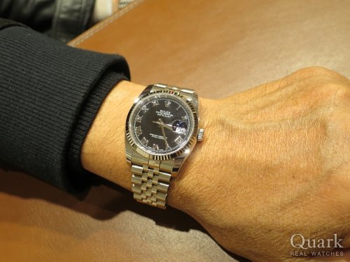 U様 この度はクォーク梅田店をご利用頂き、誠にありがとう御座います。数ある時計の中で弊店をお選び頂いたこと心より感謝申し上げます。U様ご夫妻とのお話しはとても楽しい時間を過ごさせて頂きました。高級感に溢れるデイトジャストは、どんなシーンや装いにも合わせ易く、末永くご愛用頂けると存じます。またブラックローマは、数あるバリエーションの中でもU様に仰って頂いたように落ち着きがあり、冠婚葬祭問わずお使い頂けますので、絶大な人気を集めている文字盤の一つです。今後も末永くご愛用頂ける様、私もしっかりとサポートさせて頂きますので、ご相談等が御座いましたら、お気軽にご連絡下さいませ。梅田へお越しの際は、ブレス洗浄を兼ねて遊びにいらして下さい。またU様にお会い出来る日を楽しみにしております。