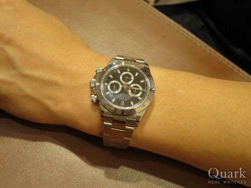 T様 この度はクォーク梅田店をご来店並びにご利用頂きまして、誠に有難うございます。念願のデイトナを手に入れて頂きました。この度は良い個体を良い価格にてご案内することが出来、嬉しく思っております。新型が出て話題が尽きず、新旧共に高騰を続けております。旧型の黒は新型の発売後も人気を衰えず御座いますので、永くご使用頂けるかと思います。お時計の事で何かできることが出来ましたらいつでもご相談下さいませ。今後共、クォーク梅田店を宜しくお願い致します。 クォーク梅田店 辻