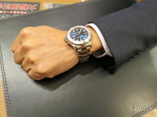 O様、この度はクォーク梅田店をご利用頂きまして誠に有難うございます。今回ご購入頂いたヨットマスターII Ref.116680はロレックスの数あるモデルの中でも最も大きい44ミリケースを採用しており、存在感抜群ですね。他店様もいくつか回られた中で当店をお選び頂き、大変光栄でございます。現在ご使用中のGMTマスターII Ref.116710BLNRとはまたひと味違った魅力がございますので、使い分けを楽しんで頂けるかと思います。操作方法やブレスレットサイズ等、お困りの事があればお気軽にご連絡くださいませ。今後共末永いお付き合いの程、宜しくお願い致します。またのご来店を心よりお待ちしております。