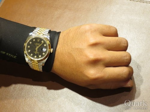 新しいモデルで探しており、ダイヤルの黒とダイヤモンド、イエローゴールドとの相性が良かったのが決め手。
