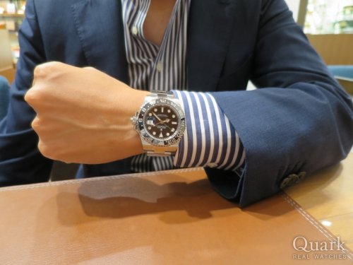 ビジネスでも使えるスポーツタイプのロレックスを探していました。グリーンのGMT針が気に入りました。