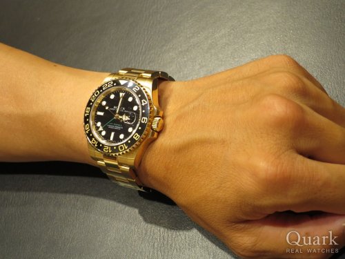 N様、この度はGMTマスター Ref.116718LNブラックをご購入頂きまして誠に有難うございます。イエローゴールドの金無垢モデルは迫力満点ですね。さりげないグリーンのGMT針がとてもかっこいいです。大きすぎない40ミリケースがN様にとてもマッチしており、大変お似合いですね。今後とも安心してご使用頂けるようしっかりとサポートさせて頂きますので、もし何かございましたらいつでもお問い合わせくださいませ。またのご来店を心よりお待ちしております。