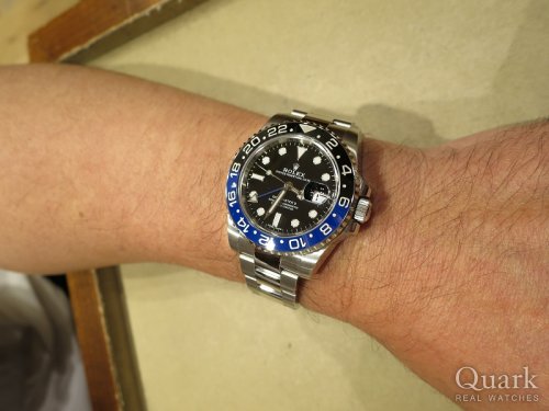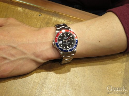K様、この度はクォーク梅田店をご利用頂きまして誠に有難うございます。今回お選び頂いたGMTマスターII Ref.116710BLNRは2013年に発表されて以来、世界中から人気を集めているモデルです。ラグにボリュームのあるケースはK様の逞しい腕元にとてもマッチしていますね。普段使いのみならずビジネスシーンにもオススメですので、末永くご愛用くださいませ。また、何か不明な点などございましたらお気軽に仰ってくださいませ。今後とも末永いお付き合いの程宜しくお願い致します。  クォーク梅田店 西村