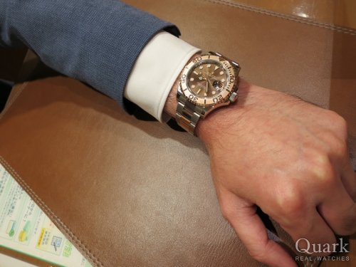 K様 いつもご利用頂き有難う御座います。ピンクゴールドは肌なじみも良く、高級感があるものの派手過ぎず、非常にバランスが取れたモデルです。他にもヨットマスターのブルーをお持ちですが、この2本でしたら使い分けも上手く出来ると思います。またお会い出来る事を大浦も含め、楽しみにしております。有難う御座いました。クォーク梅田店 店長 宮崎