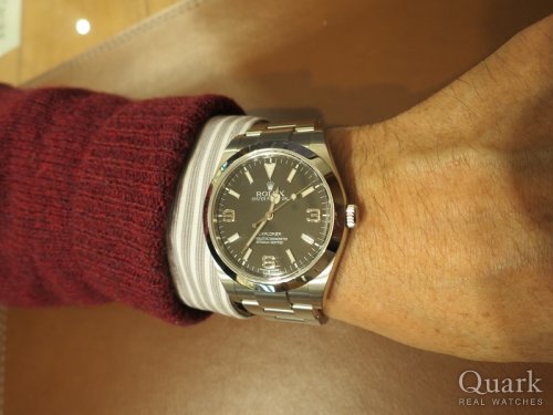 O様 この度は、クォーク梅田店をご利用頂き、誠に有難う御座いました。サイズ感で選ばれた今回のエクスプローラーⅡ、42ミリという存在感のある大きさなので、しっかりした腕周りのO様にピッタリの1本ですね!大きさだけでなく、オレンジの24時間針がアクセントになる遊び心のあるデザインも魅力ですので、これから半袖の季節になると、袖口から見えるエクスプローラーII が周囲の目を引きますね!機能面では、2ヶ国の時間表示が可能で、操作が他のモデルとは若干異なります。これからご使用頂き、ご不明な点等が御座いましたら、お気軽にお問い合せください。また、梅田へお越しの際は是非弊店へお立ち寄りくださいませ。またのご来店を心よりお待ち致しております。 クォーク梅田店 川田