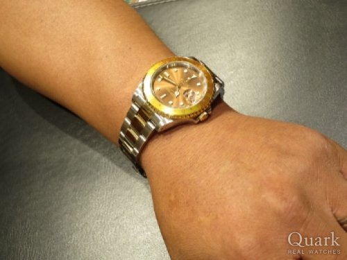 通りがかりで。 新作のデイトナがなくて、Dブルーが気になった。 ヨットマスターのロレジウムと着け比べて決めた。 GMTやデイトジャストとかぶらなく、珍しい。