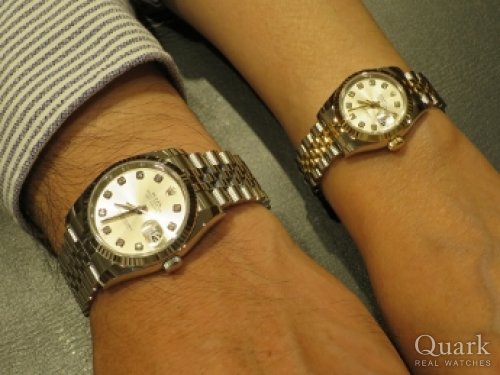 S様 この度はクォーク梅田店ご来店並びにご利用頂き誠に有難う御座います。こちらのデイトジャストはサイズが36mmと大きすぎず小さすぎない使い勝手の良いモデルです☆レディースのサイズ感に物足りない女性の方お勧め!40mmが大きいと感じる男性にお勧め!!(笑)お二人でご使用できますねっ♪おしとやかご夫婦に癒されました。またブレス洗浄など承っておりますので、是非遊びにいらして下さい。今後とも宜しくお願い致します。  クォーク梅田店 平田