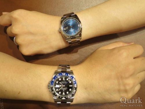 S様 この度はクォーク梅田店ご来店並びにご利用頂き誠に有難う御座います。GMTマスターⅡの青黒はとても人気が高く旧型のカラーを含めてもトップクラスの人気ですっ!青の差し色が特徴的で爽やかさを演出し、全体的には黒で統一されている為ON・OFFに関わらずガンガンご使用頂けます☆ペアでのご購入有難う御座います。お近くにお越しの際は是非、またご夫婦でお立ち寄り下さいませ。心よりお待ちしております。