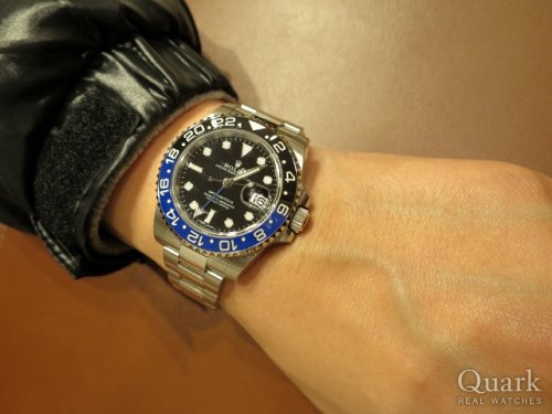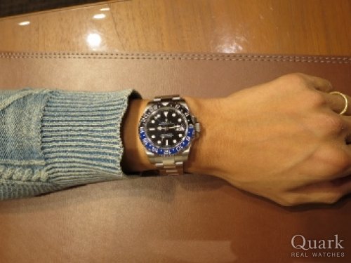 K様 いつもクォーク梅田店をご利用頂き、誠にありがとうございます。今回は2色ベゼルのGMTマスターIIということで、より注目度の高いプレミアムモデルですね!!このブルーは絶妙な色合いで、少し近づかなければ確認出来ないというさりげなさも魅力的です。末永くお使い頂ける1本ですので、メンテナンスなどで気になる点がございましたらお気軽にお申し付けくださいませ。今後とも、当店をよろしくお願い申し上げます。