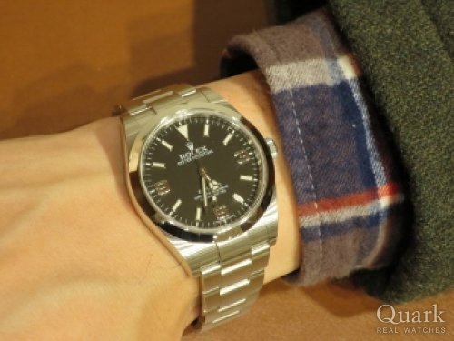 M様 この度はクォーク梅田店をご利用頂きまして、誠にありがとうございます。初めは他のモデルをお探しでしたのでM様のご決断には驚きました。ご購入頂きましたエクスプローラーはM様のコメントにもあるようにご着用の機会を選ばないほど、シンプルなデザインであり、適度なサイズ感が着け心地の良さにも繋がっております。右手にご着用されることについて気にされておりましたが、もちろん問題はございません。左手に着ける方が多いこともあり、同じモデルでも右手に着けた場合は見える部分が違うため印象は変わるかと思いますので、そこも楽しんで見て下さい。大変、気に入って頂けたようでございましたので、長くご愛用頂ければ幸いでございます。ご愛用の中で何かご不明点などございましたらお気軽にご連絡下さい。今後ともご購入頂きました時計と併せて、クォーク梅田店もよろしくお願い申し上げます。
