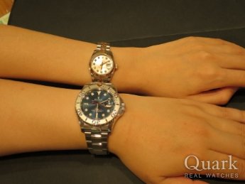 この度は、クォーク梅田店ご来店並びにご利用頂き誠に有難うございます。語学力が乏しく申し訳ございませんでした。話や心が通じた時とても嬉しく、楽しい時間を過ごさせていただきました。ヨットマスターはベゼルのプラチナが印象的で、青の文字盤がとても合う存在感の強い、私も好きなモデルです。デイトジャストはピンクゴールドと10ポイントダイヤ、ピンクの文字盤が女性らしくもありドレスウォッチとしてもご使用いただけるタイプです。どちらのお時計も素敵で、お二方共大変お似合いでございました。また日本に来られる際は是非お立ち寄り下さいませ。クォーク梅田店平田