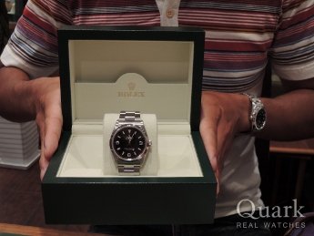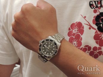 4月にエクスプローラーII(白)を買い、とても気に入りました。8月になり、黒のサブマリーナーがどうしても欲しくなり、前回同様、信頼のクォーク梅田店と、店員の松原様の親切な対応により決断しました。