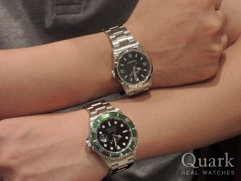 T様 いつもご利用頂きまして誠に有難う御座います。2本もまとめてご購入頂き、驚きました。使い分けも色々と出来ると思いますし、沢山お使い頂けると嬉しく思います。新型のグリーンサブに比べますと控えめな印象がありますが、ベゼルのみのグリーンは逆にワンポイントになりますし、非常に良いと思います。引き続き宜しくお願い致します。クォーク梅田店 店長 宮崎