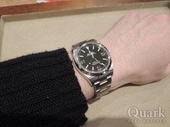 先輩の付き添いで行きましたが、欲しくなり購入しました。 カレンダーの無いスッキリとしたダイヤルや簡単な日付を合わせる手間が無い為、このモデルにしました。