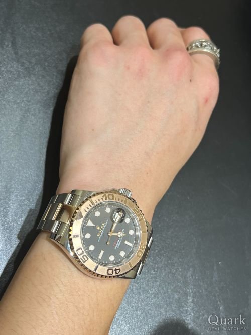 I様 この度は数ある時計店の中から弊社をご利用いただきありがとうございました。入荷数の少ないモデルとなる金無垢ヨットマスター。エバーローズゴールドケースに柔軟性のあるオイスターフレックスを装着し、ベゼルにはセラミック製マットブラックセラクロムインサートを備えた素晴らしい1本でございます。ご希望のモデルをご案内することができ大変嬉しく思います。末永くご愛用いただけましたら幸いでございます。今後とも、末永いお付き合いの程よろしくお願い致します。